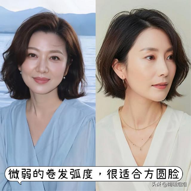 三、小弧度的齐耳发,很适合方圆脸的女性