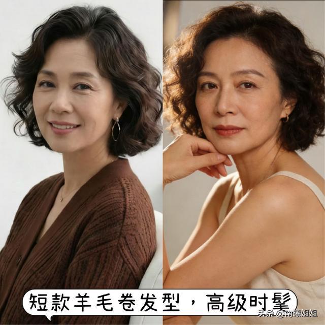 二、优雅还时髦的短款羊毛卷发型,真适合中年女人呢!