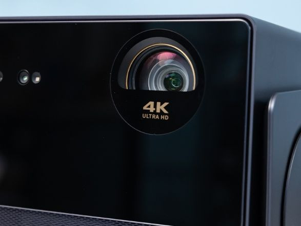 仔细观察,可以发现当贝S7 Ultra Max正面镜头模组异常厚,还加上了4K Ultra HD的烫金文字。据了解,这款投影的镜头模组镜片多达17片,在同类产品中可以算作超大规模了。