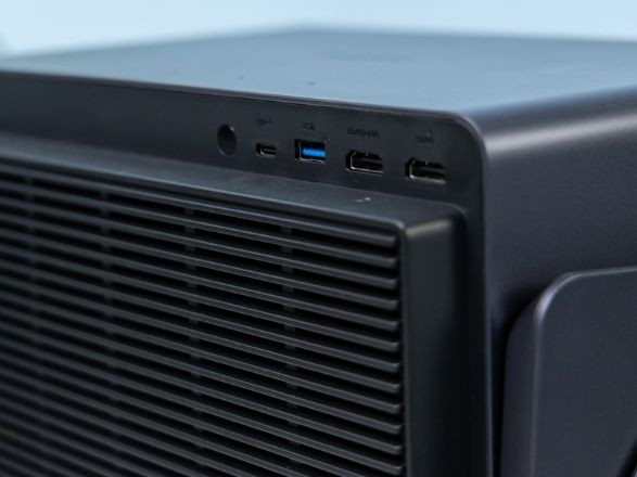 接口配置方面,当贝S7 Ultra Max为我们提供了4个接口,为USB Type-C、USB 3.0,HDMI(eARC)接口以及HDMI 2.1接口。其中HDMI(eARC)接口可负责接入功放等设备,可直接连接家庭影院系统。这些接口的数量虽不多,但胜在够用,电脑、手机、游戏主机、机顶盒都能直接适配。