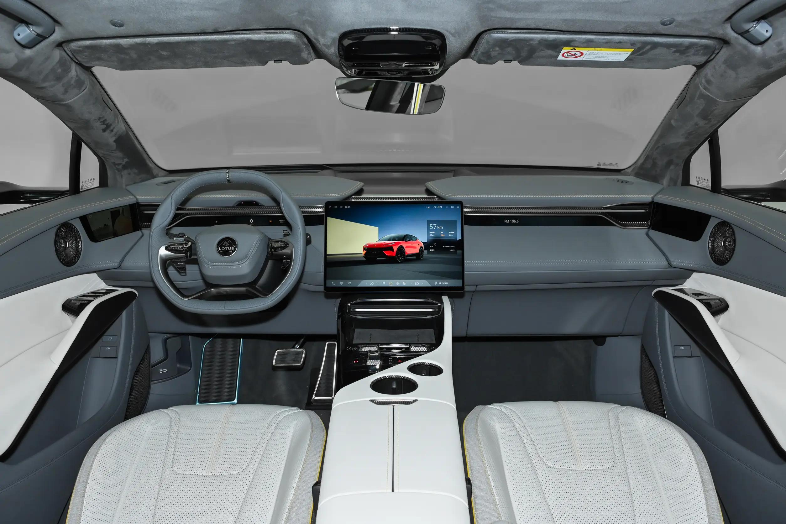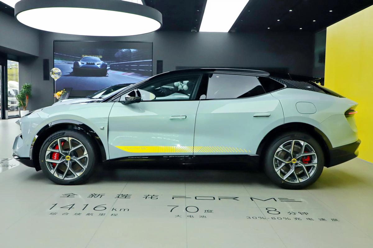 全新莲花For Me的外形设计,给人的整体感觉是流畅而动感的。它延续了莲花品牌近年来强调的“孔隙”式设计理念,车身各处遍布着功能性的开孔与通道,这不仅仅是为了视觉上的战斗气息,更是为了切实的空气动力学服务。从前脸看去,最引人注目的是主动式贯穿进气格栅。它可以根据散热需求自动开合,在需要大量散热时完全打开,而在高速巡航追求低风阻时又能部分闭合,兼顾了效能与效率。格栅两侧是标志性的L形分体式LED大灯组。上方锐利的日间行车灯带如同两道剑眉,赋予了车辆不错的神韵;下方的远近光大灯则巧妙地隐藏在格栅两侧的通风道结构中,与整体设计融为一体,不会显得突兀。前保险杠下方的运动化前唇和两侧真实的导流槽,进一步强化了其源自赛道基因的视觉特征。