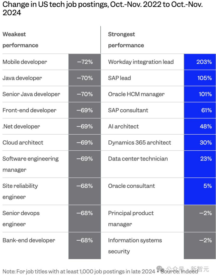 自2022年11月ChatGPT推出以来,美国的技术岗发生了巨大变化——