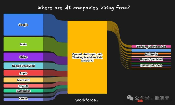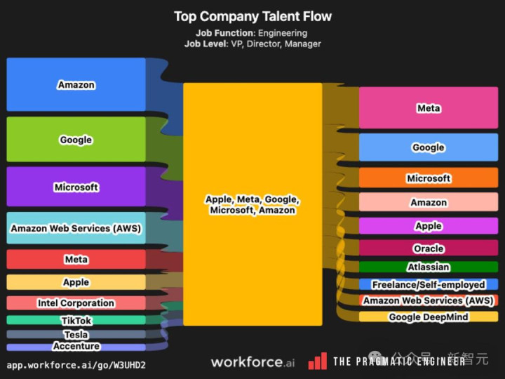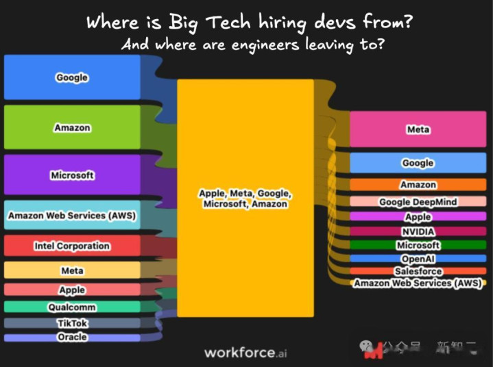 五大巨头(Meta、Google、Amazon、Apple、Microsoft)主要彼此挖人,外加Intel、Qualcomm、TikTok、Oracle等。